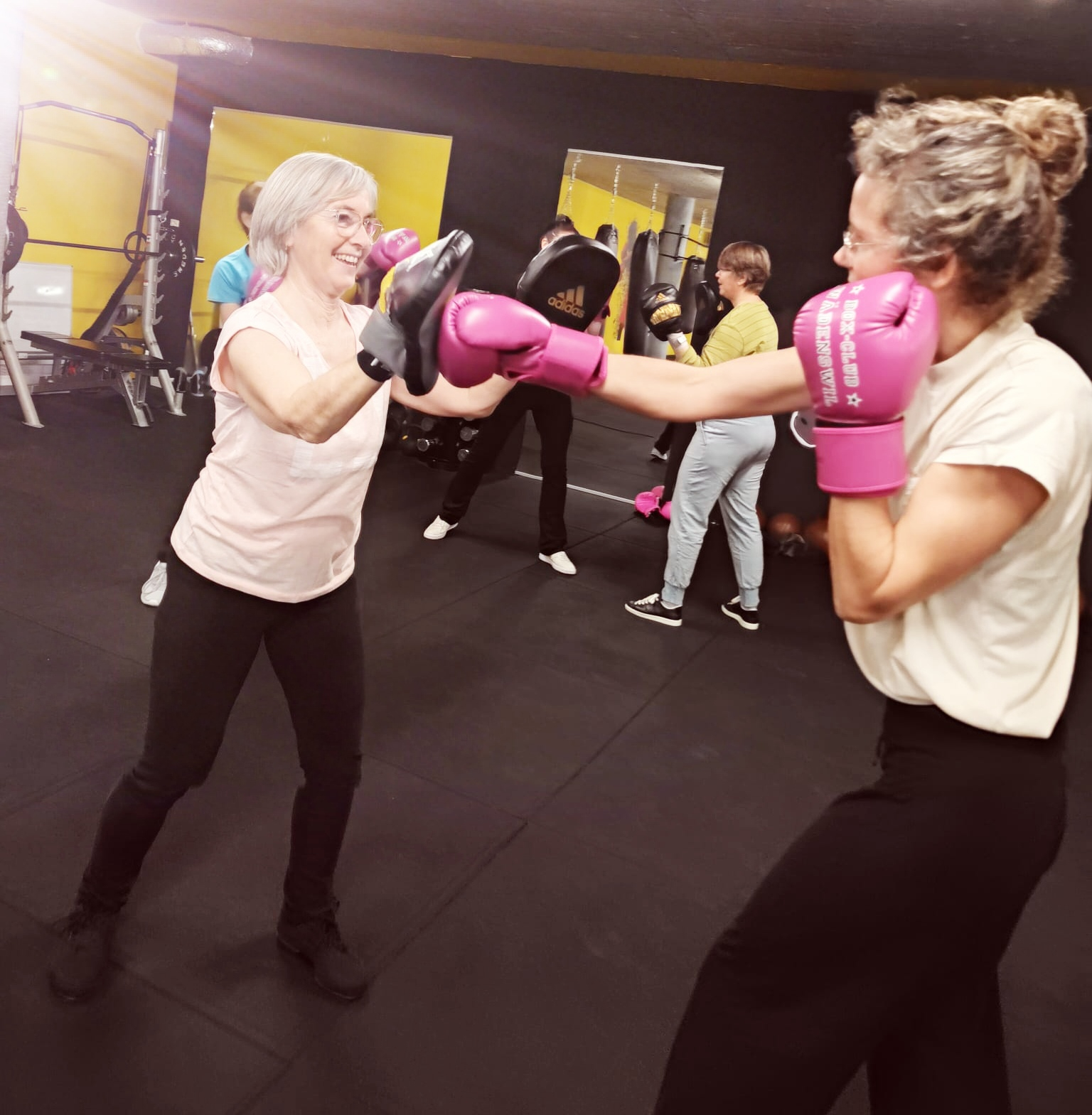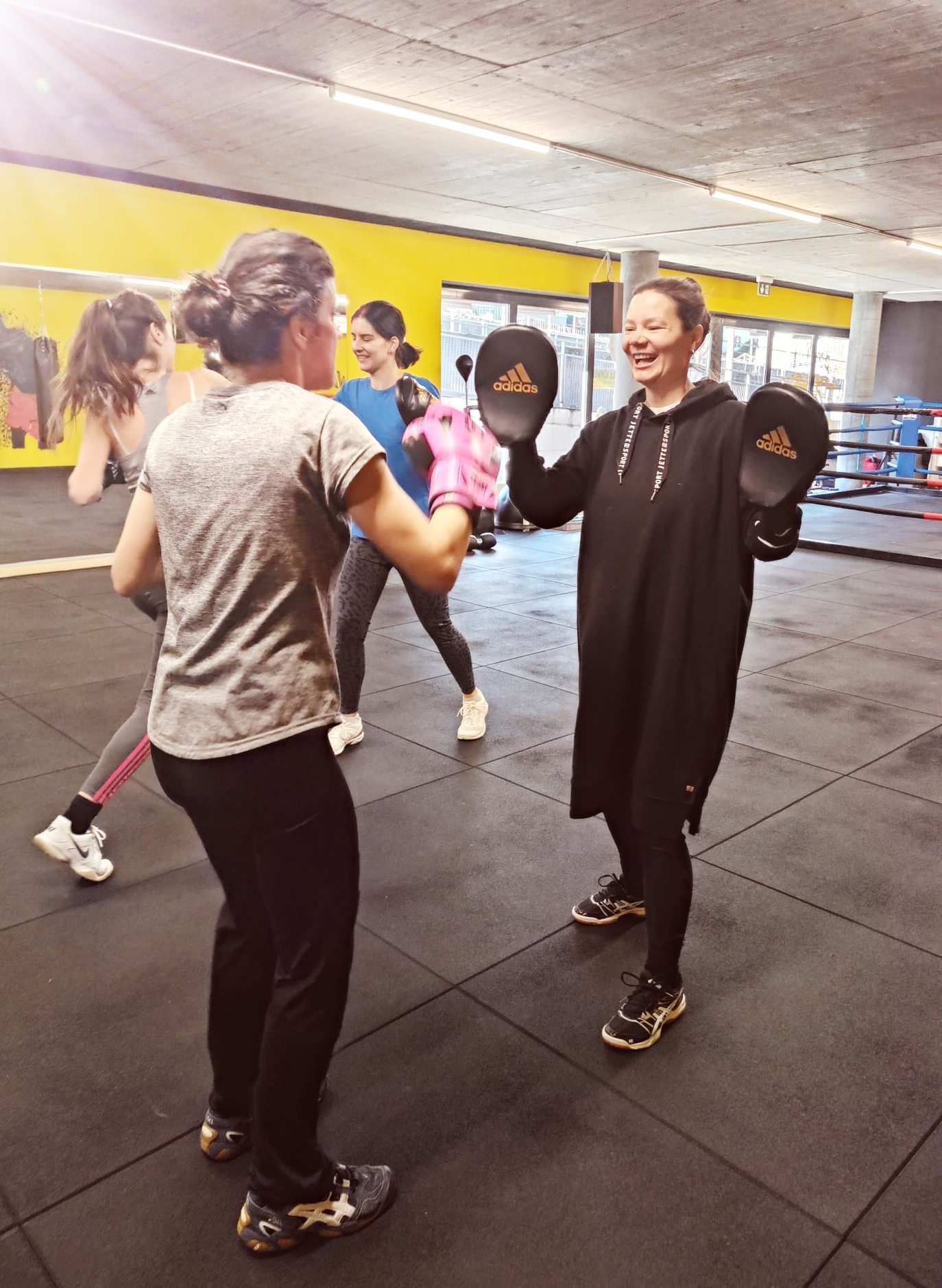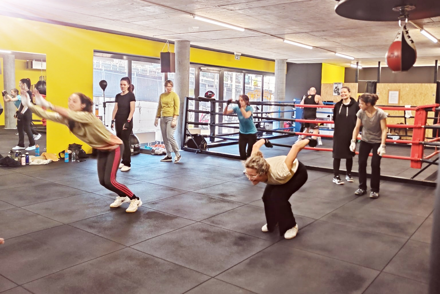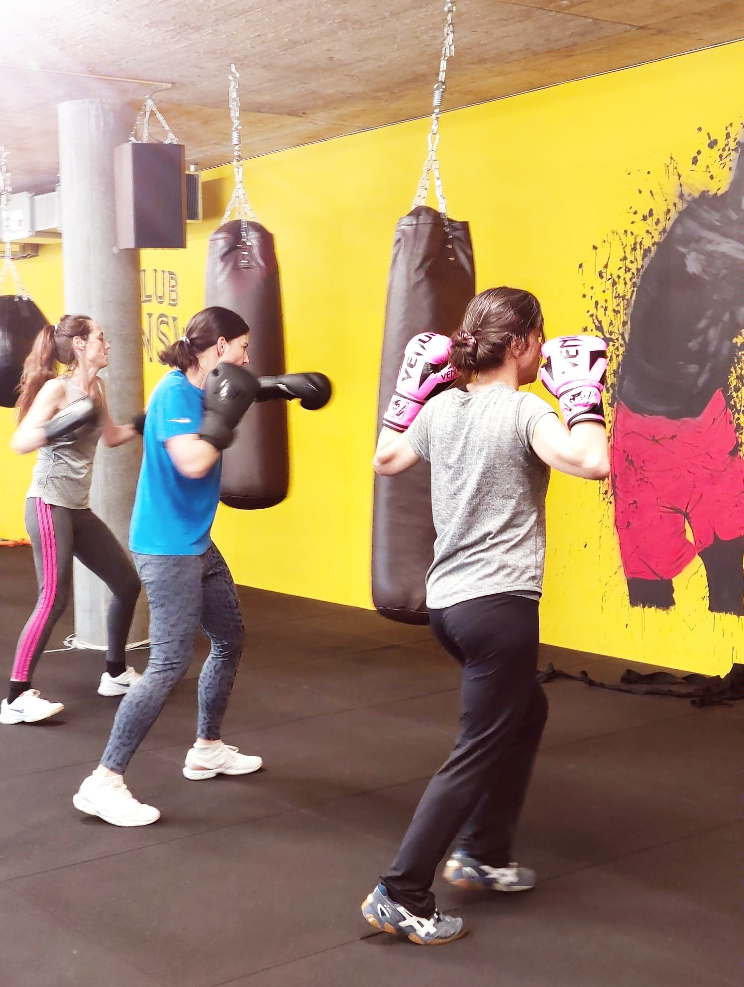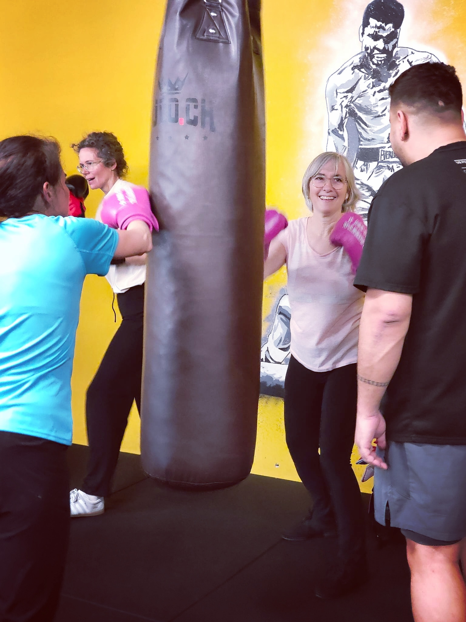 Das Warmup war sehr effizient (und au chli gemein!) und dann zogen wir auch schon die Boxhandschuhe an und lernten die ersten Abläufe. Es gaben alle ihr Bestes. Das sah man zwar nicht immer auf Anhieb, das war aber wirklich so:-). «1, 2, 3» hat jetzt auf alle Fälle eine ganz andere Bedeutung im Leben. Wir wissen, dass man auch das Gesicht schützen muss. Den Bauch ohnehin. Wir können uns ducken, Dinge meiden und ebenso angreifen – alles brauchen wir im Alltag!