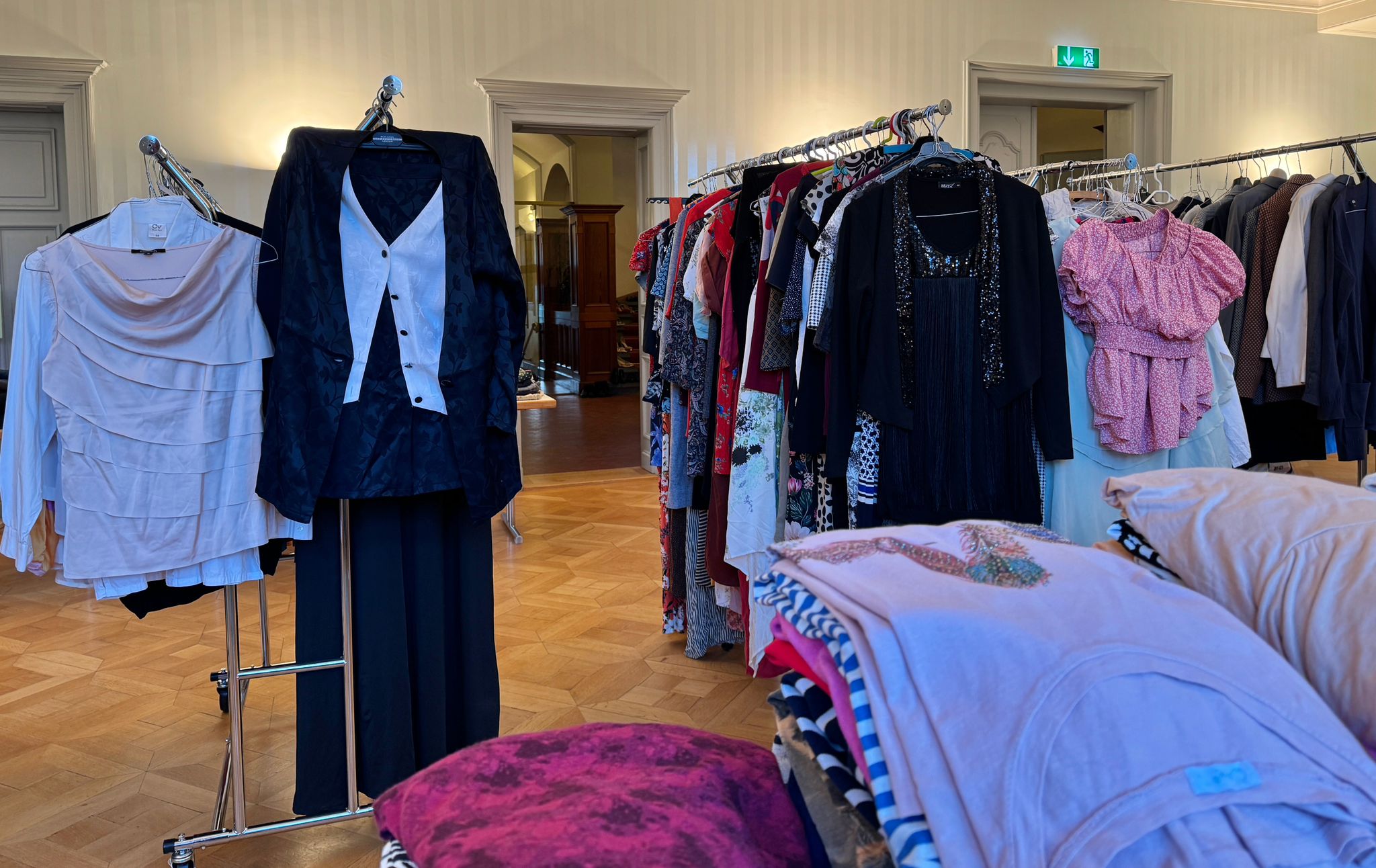 Samstag, den 21. März, war es soweit! Mit der Türöffnung begann ein emsiges Treiben im Haus. Junge und alte Menschen, einzeln oder zu zweit, Mütter und Töchter oder Paare waren zwischen den Kleiderständern und Tischen ab Türöffnung bis zum Ende zu beobachten. Es wurde probiert, bei Bedarf wurden die Garderoben im 1. Stock genutzt, es wurde begutachtet, sich ausgetauscht, kommentiert und gelacht: