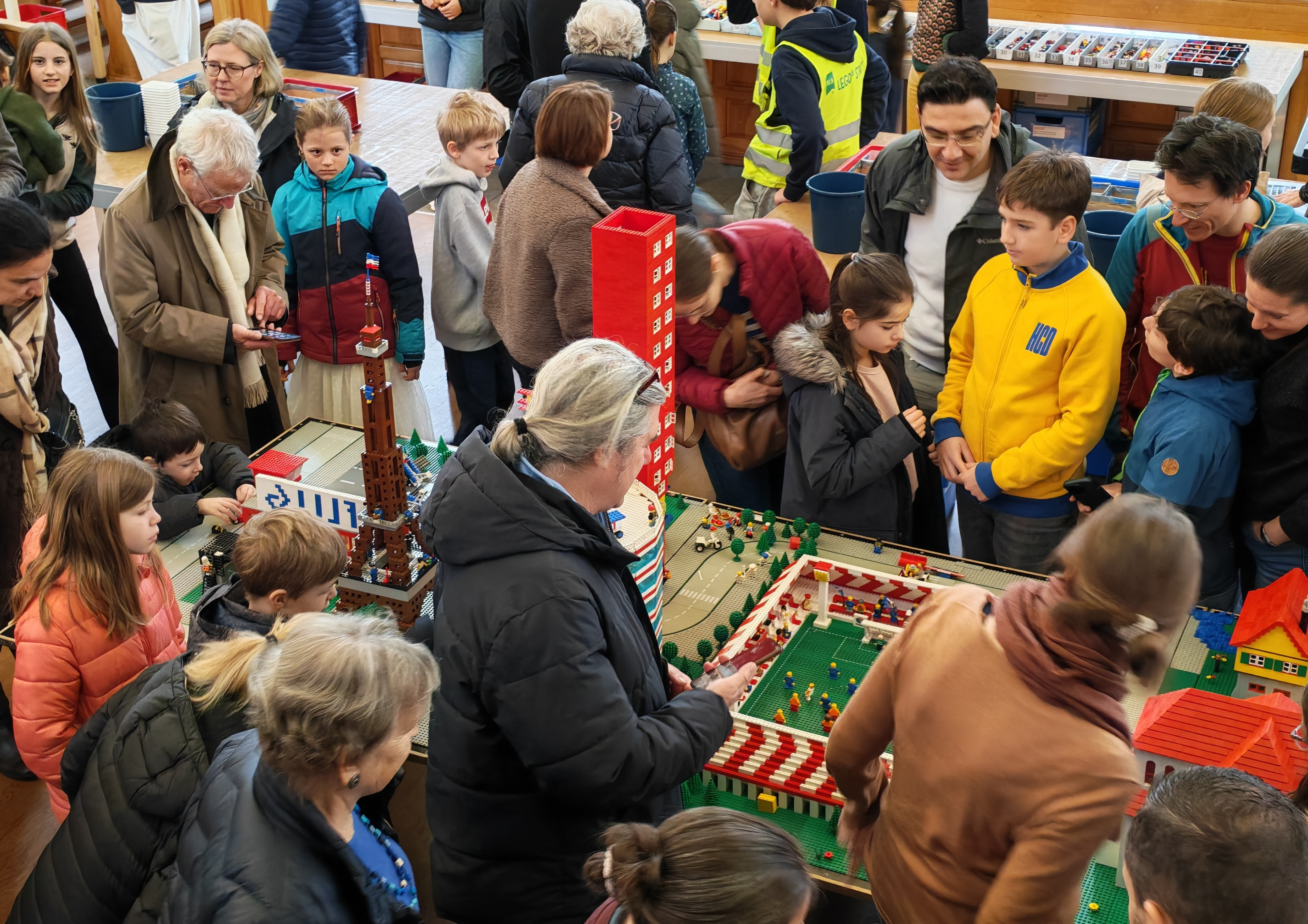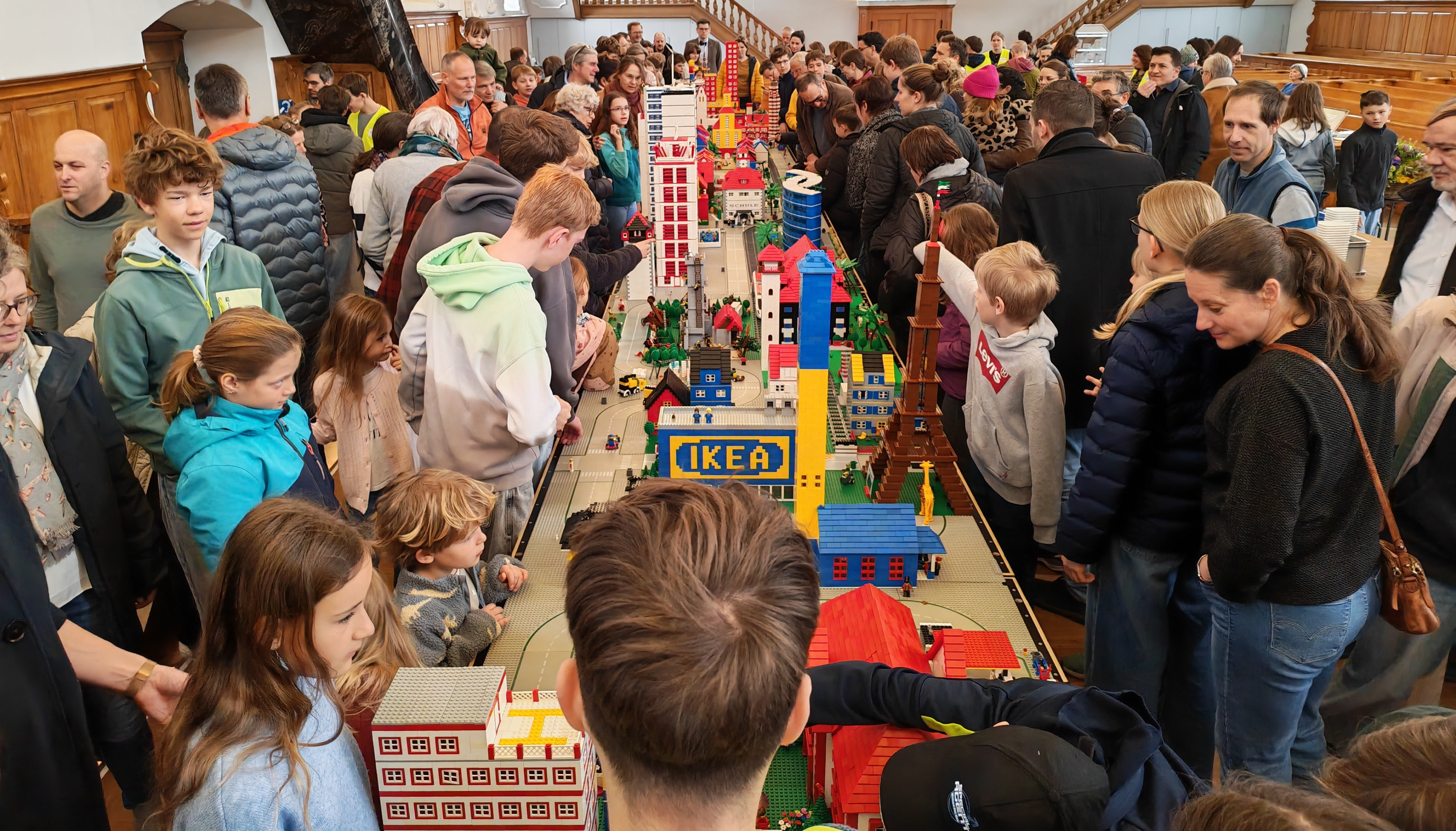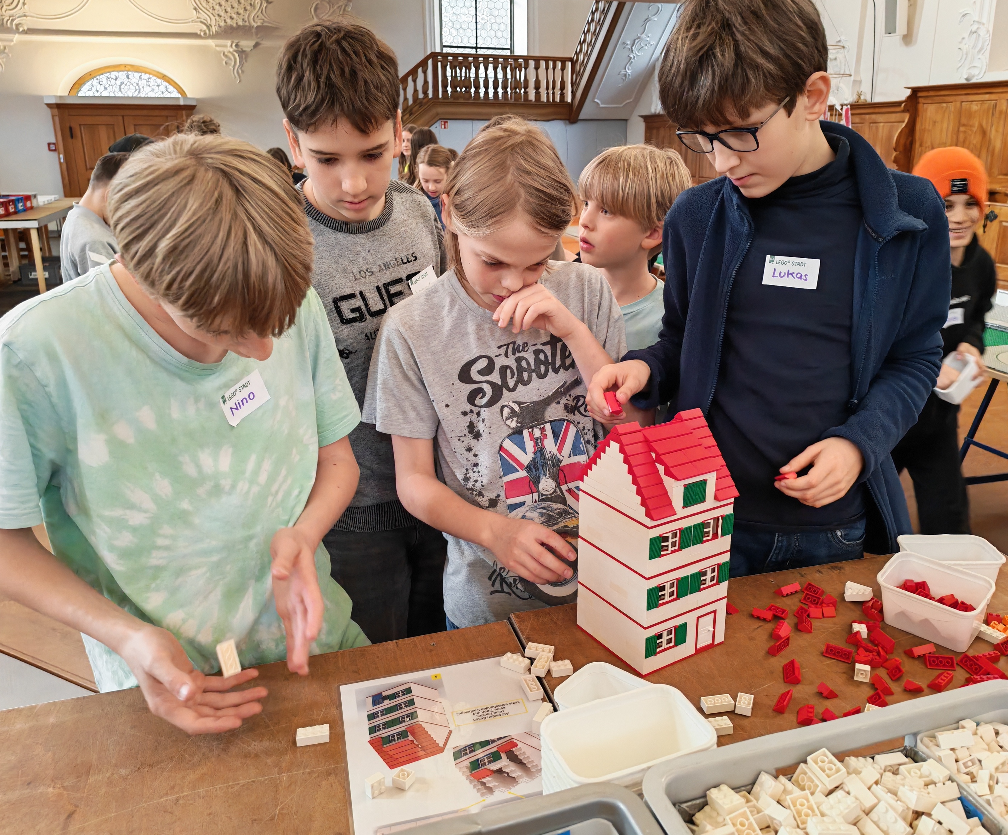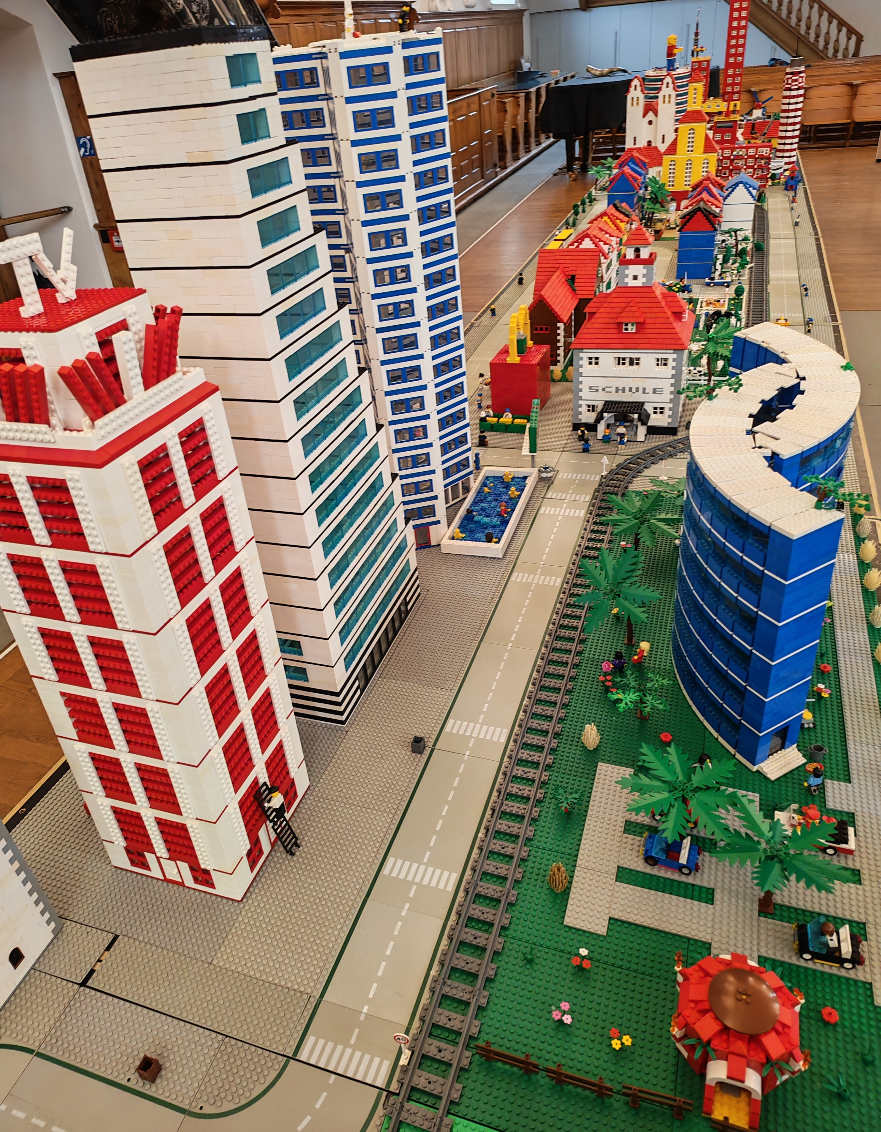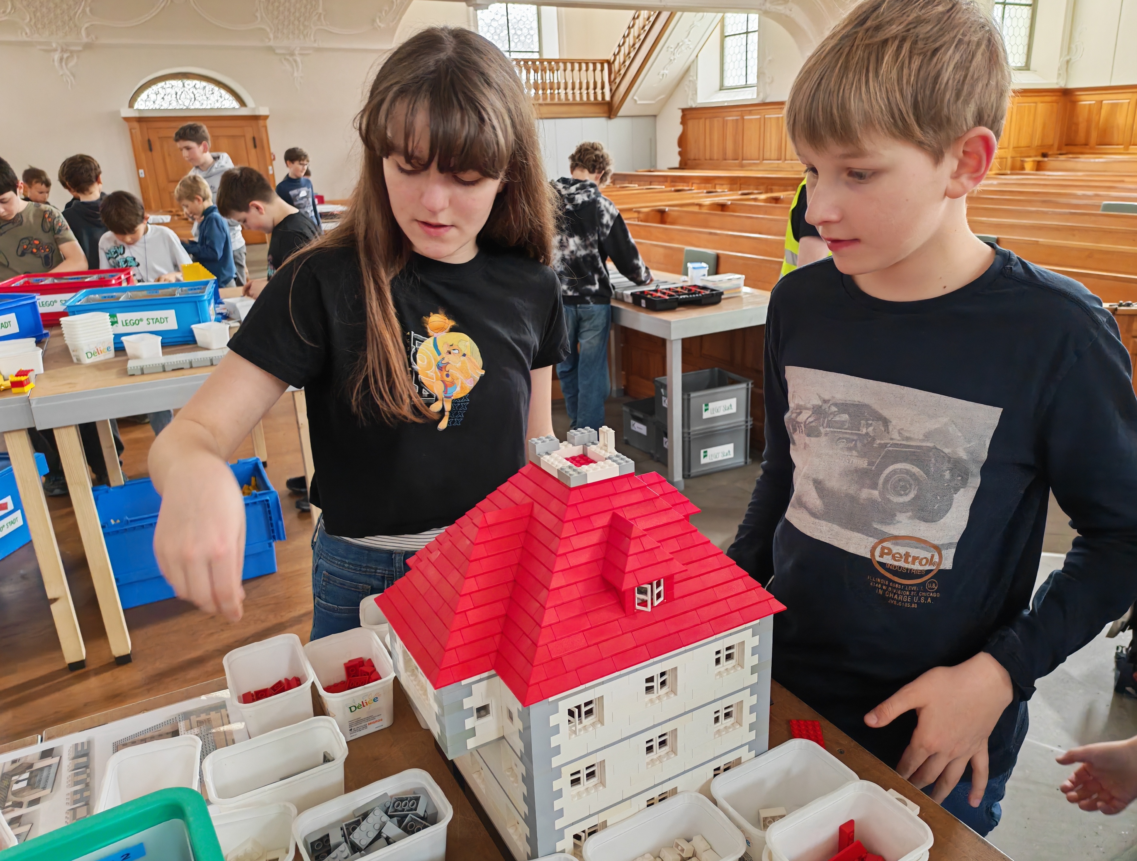 In kleinen Teams bauten alle als Einstieg zuerst einmal ein Reihenhäuschen. Und schon war man bereit für die grossen Projekte: Roche-Tower, Hotels, Schule, Stadion, Ikea, Kirchen, Flughafen und vieles mehr. Einen lebhaften Eindruck von der Bauerei und von der fertigen Stadt bekommen Sie hier unterhalb in unserem ausführlichen Fotoalbum (beim Pfeil weiterklicken).