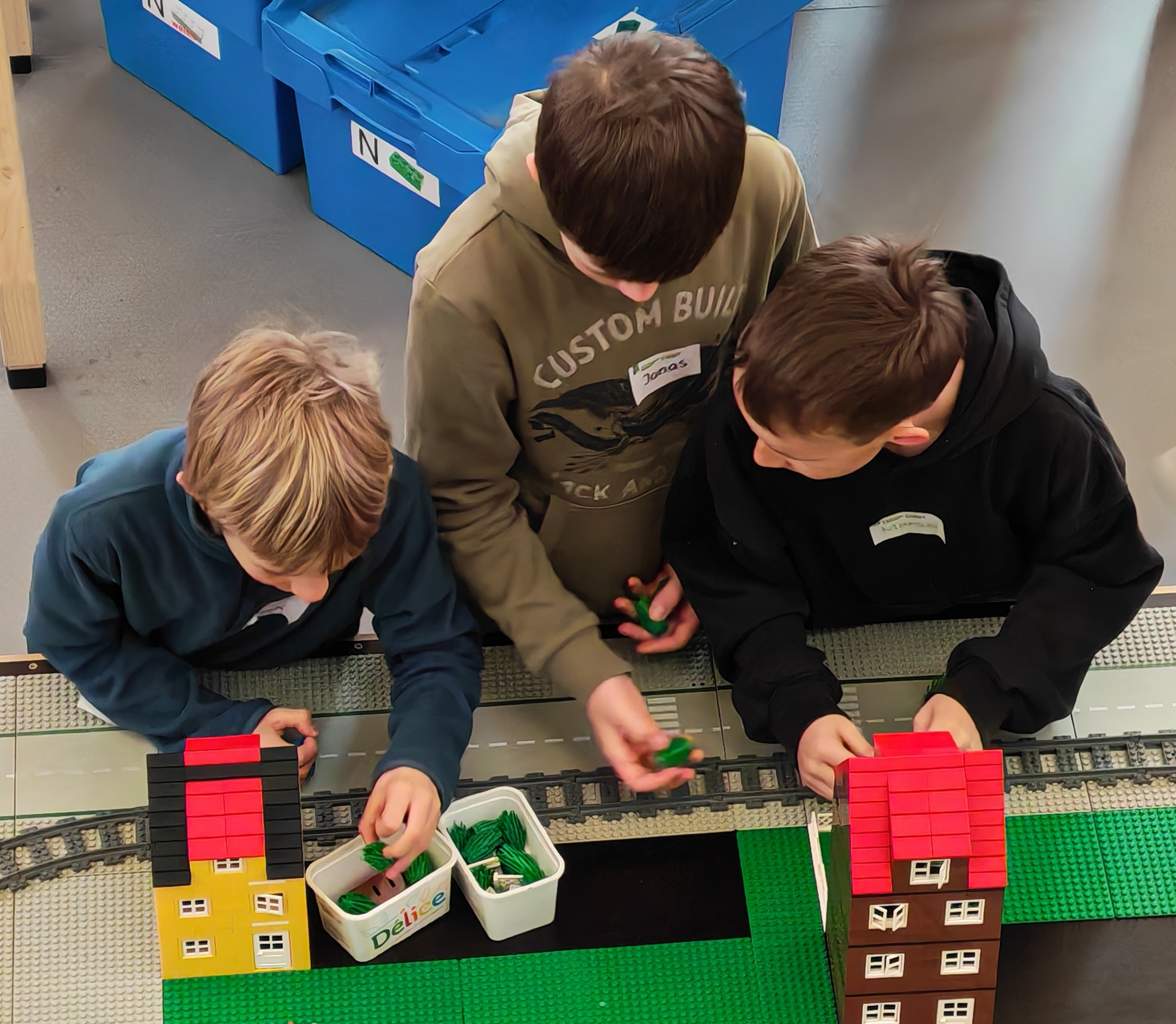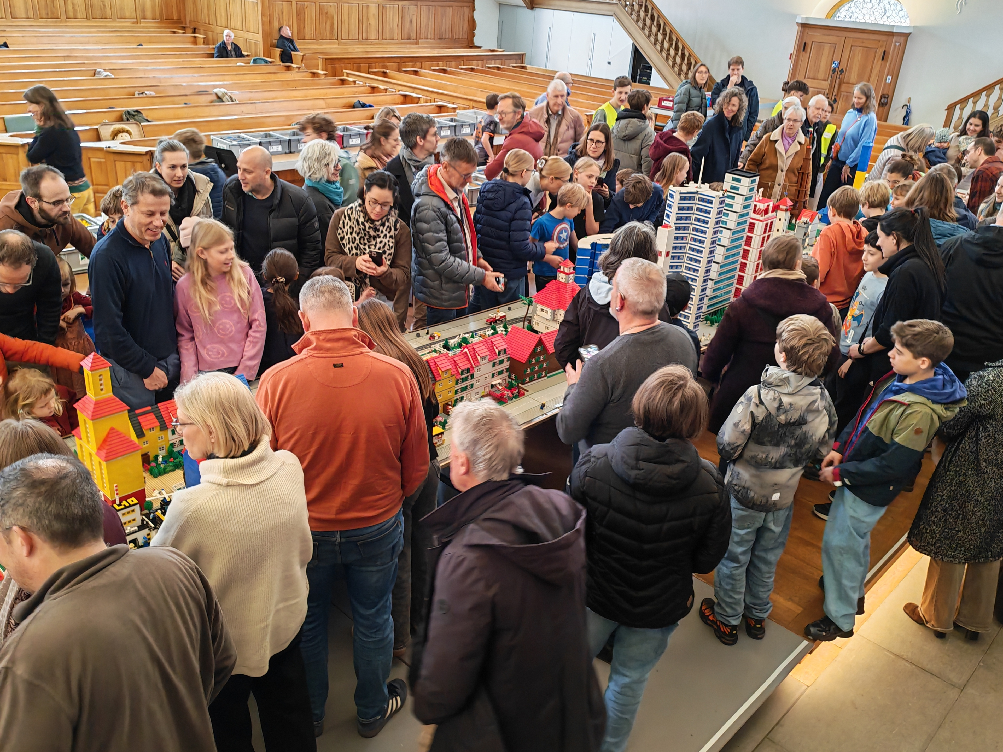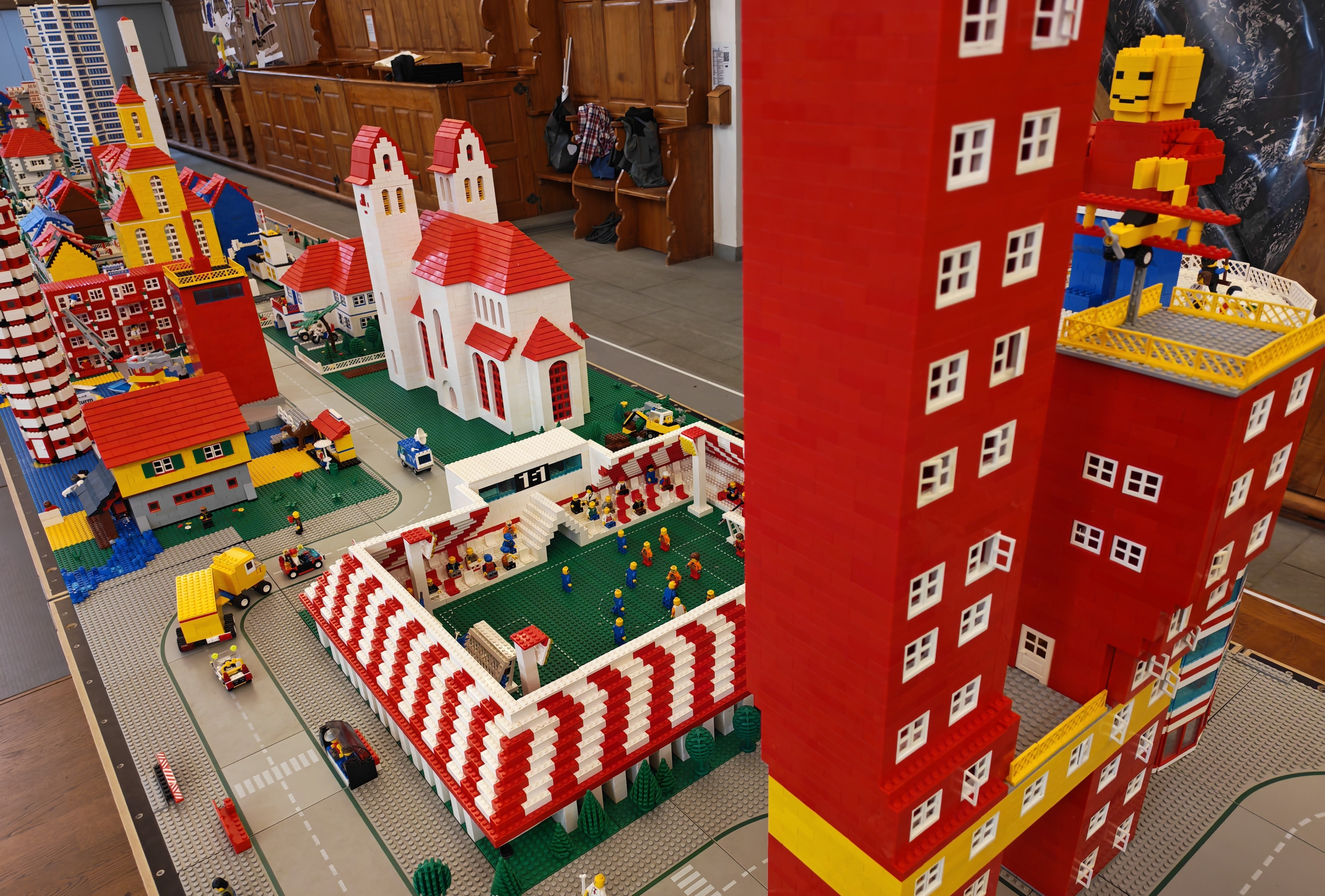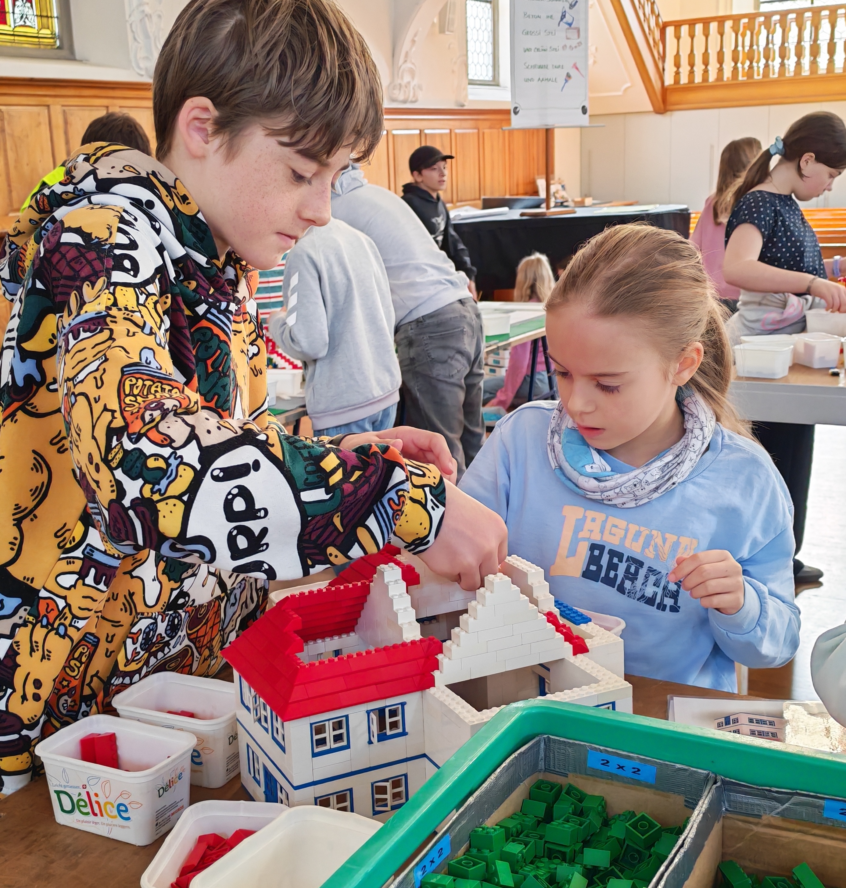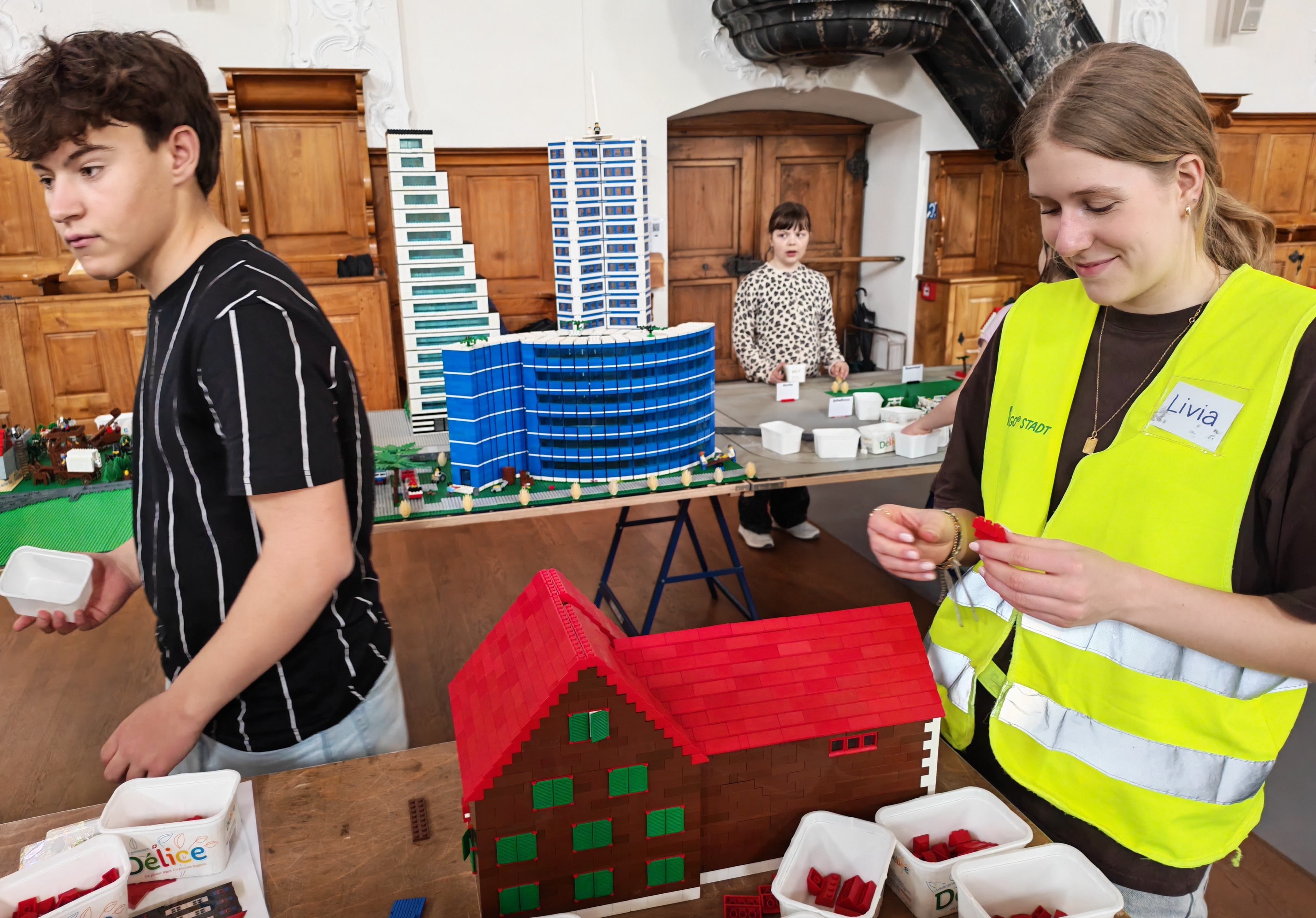 In kleinen Teams bauten alle als Einstieg zuerst einmal ein Reihenhäuschen. Und schon war man bereit für die grossen Projekte: Roche-Tower, Hotels, Schule, Stadion, Ikea, Kirchen, Flughafen und vieles mehr. Einen lebhaften Eindruck von der Bauerei und von der fertigen Stadt bekommen Sie hier unterhalb in unserem ausführlichen Fotoalbum (beim Pfeil weiterklicken).