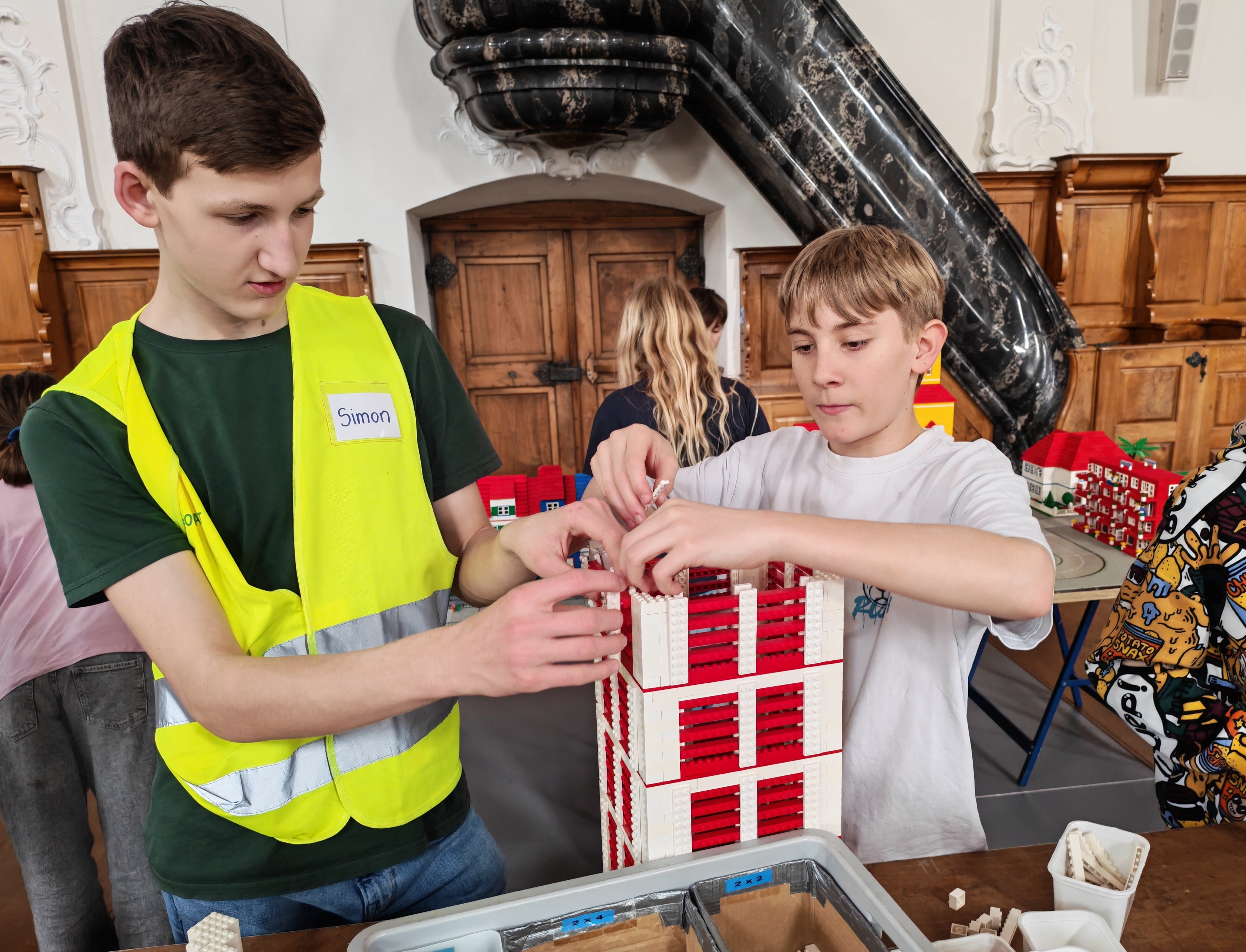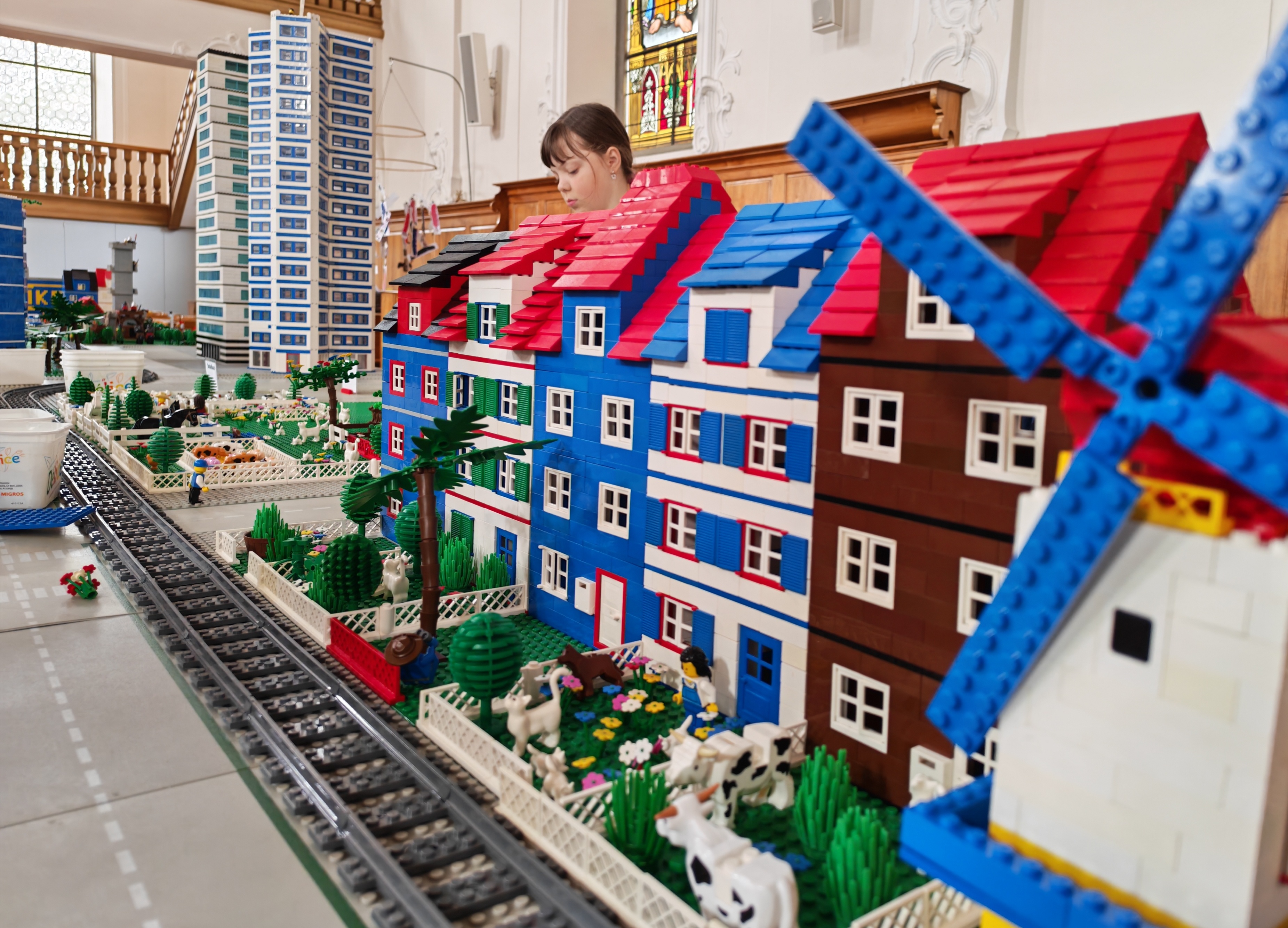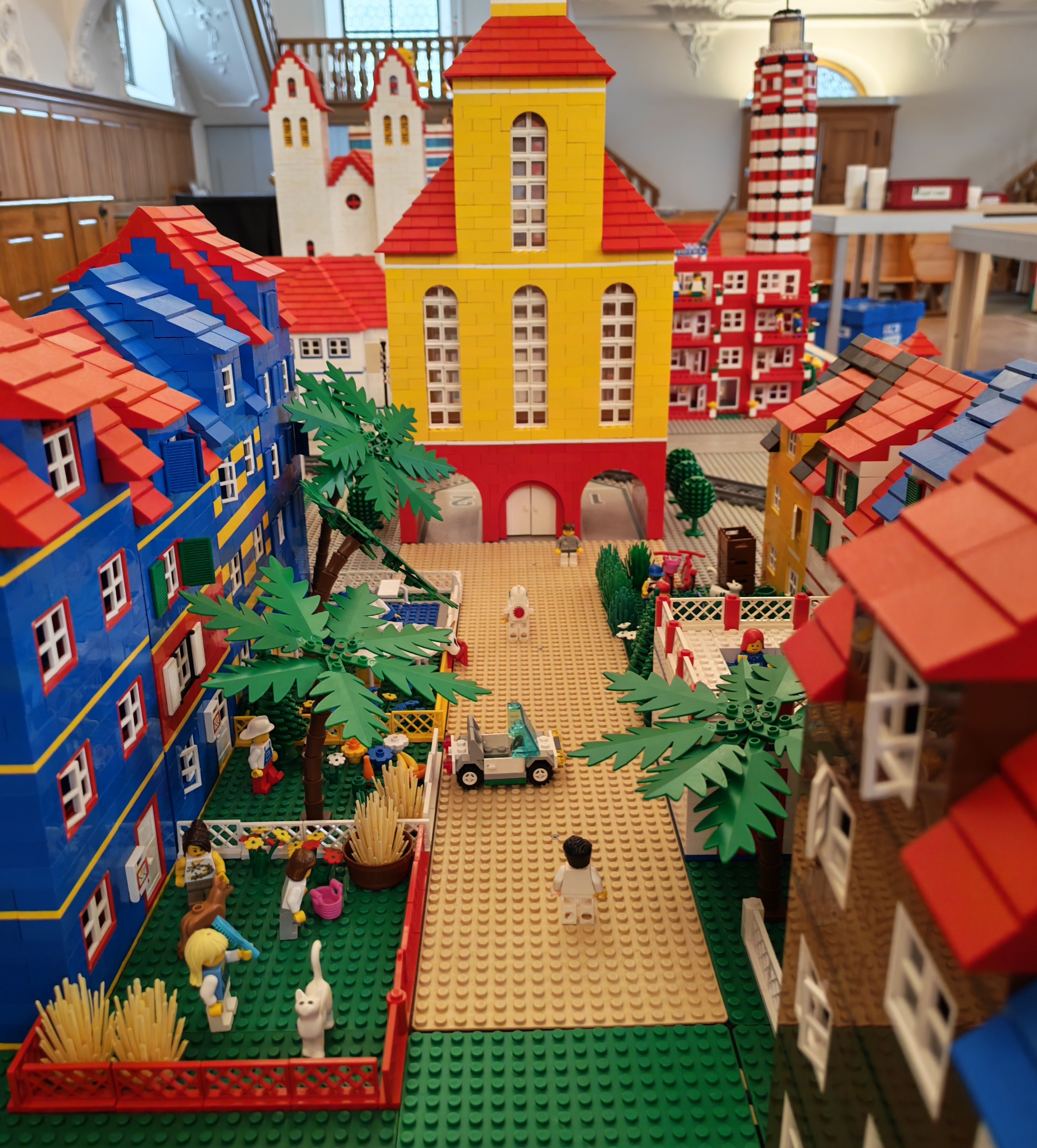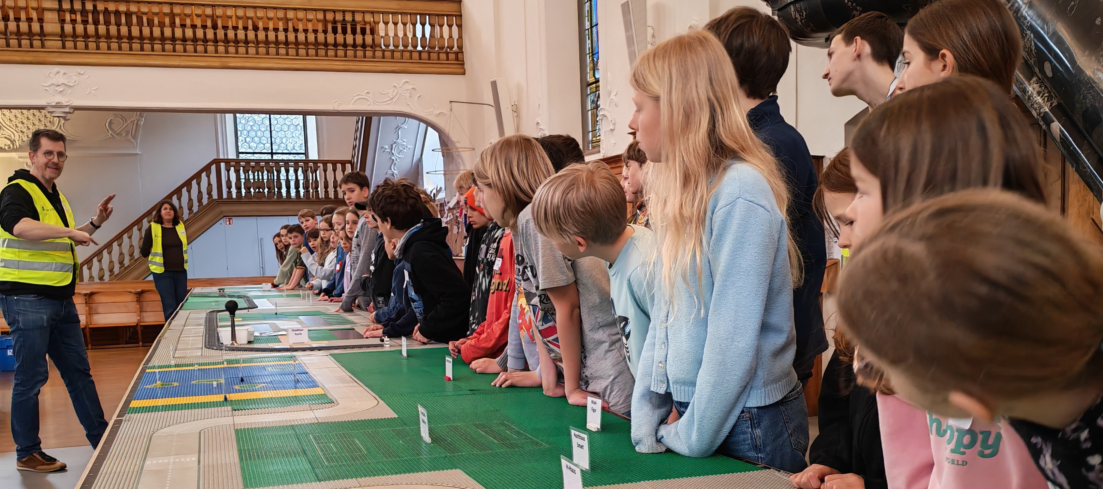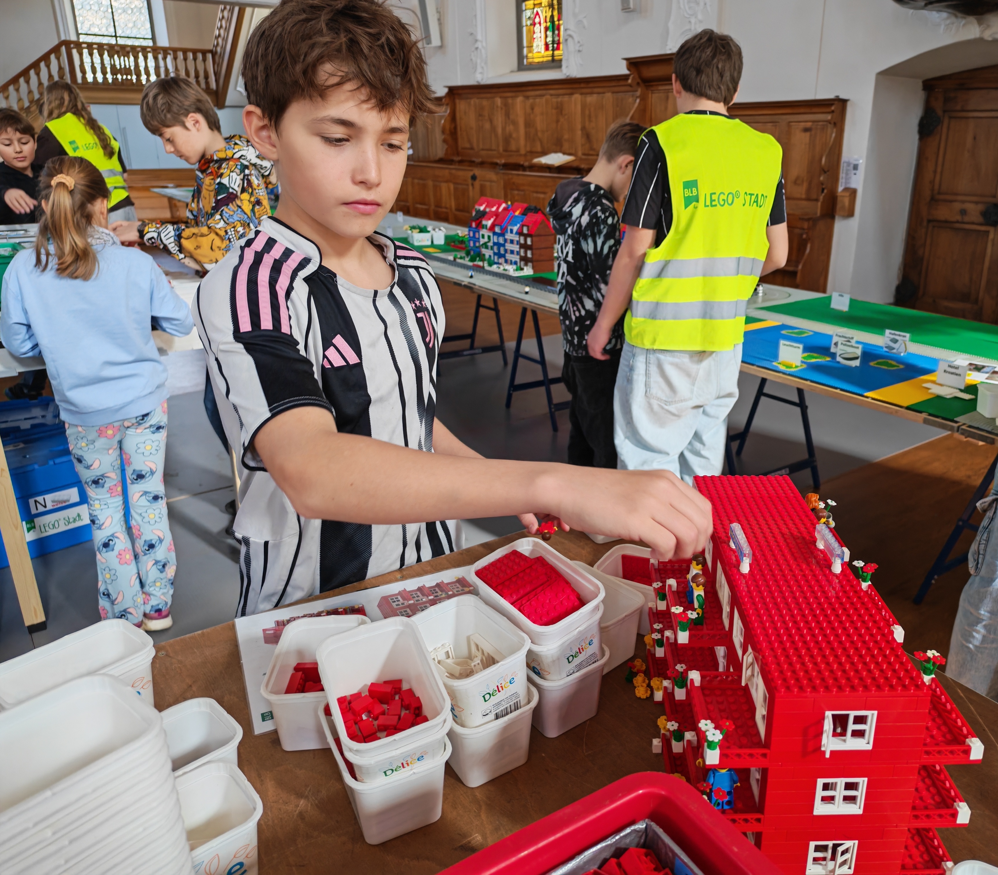 In kleinen Teams bauten alle als Einstieg zuerst einmal ein Reihenhäuschen. Und schon war man bereit für die grossen Projekte: Roche-Tower, Hotels, Schule, Stadion, Ikea, Kirchen, Flughafen und vieles mehr. Einen lebhaften Eindruck von der Bauerei und von der fertigen Stadt bekommen Sie hier unterhalb in unserem ausführlichen Fotoalbum (beim Pfeil weiterklicken).