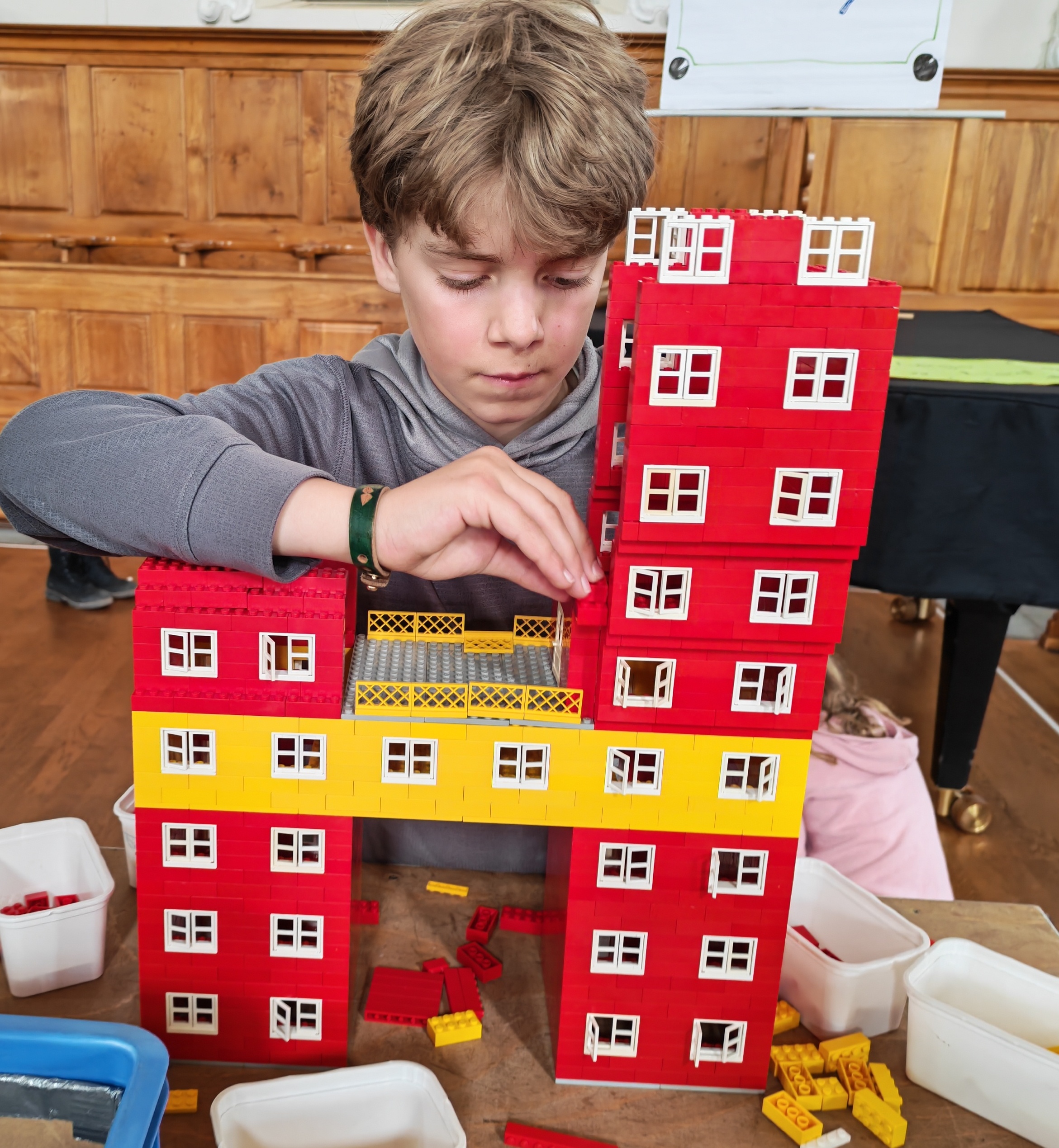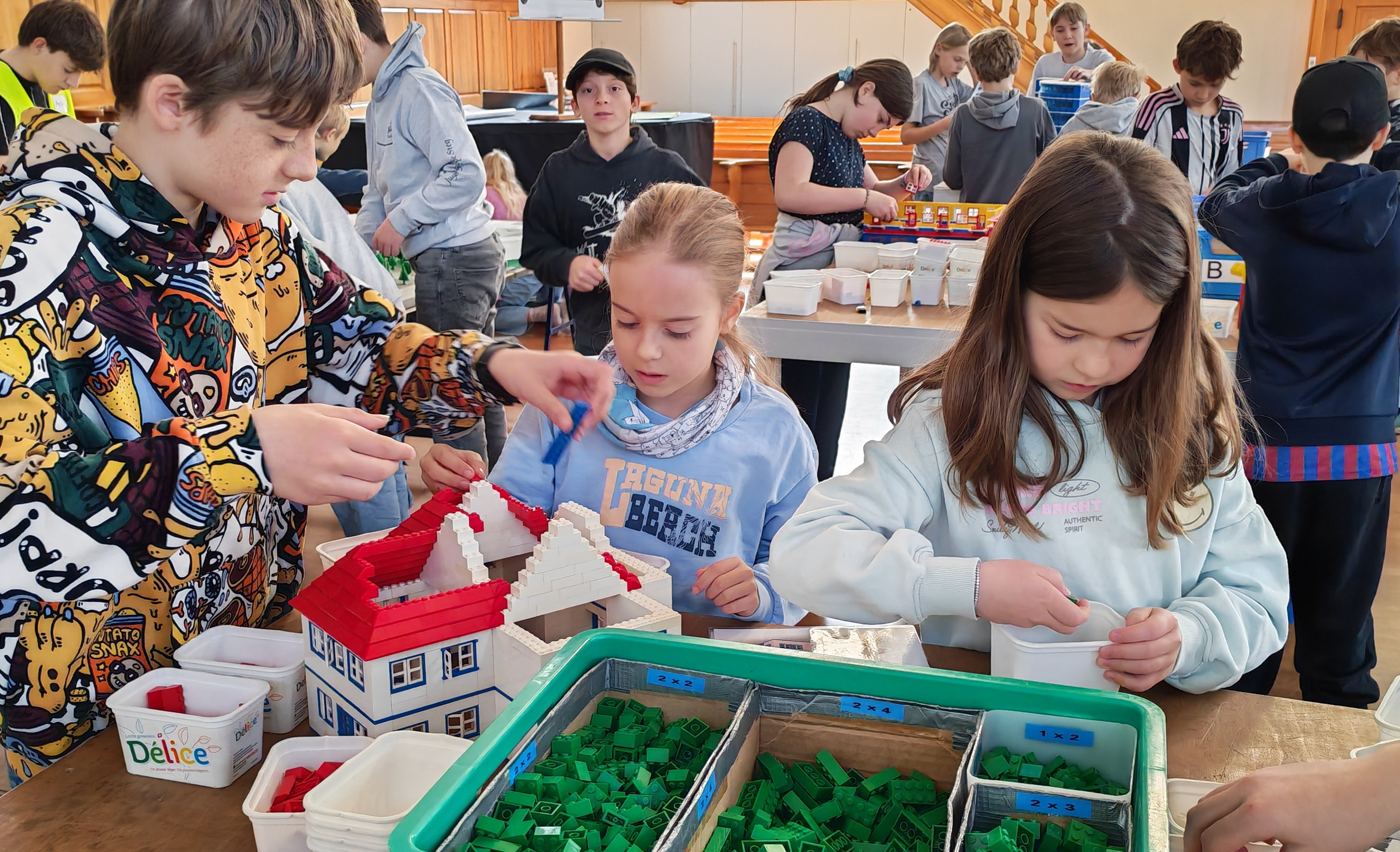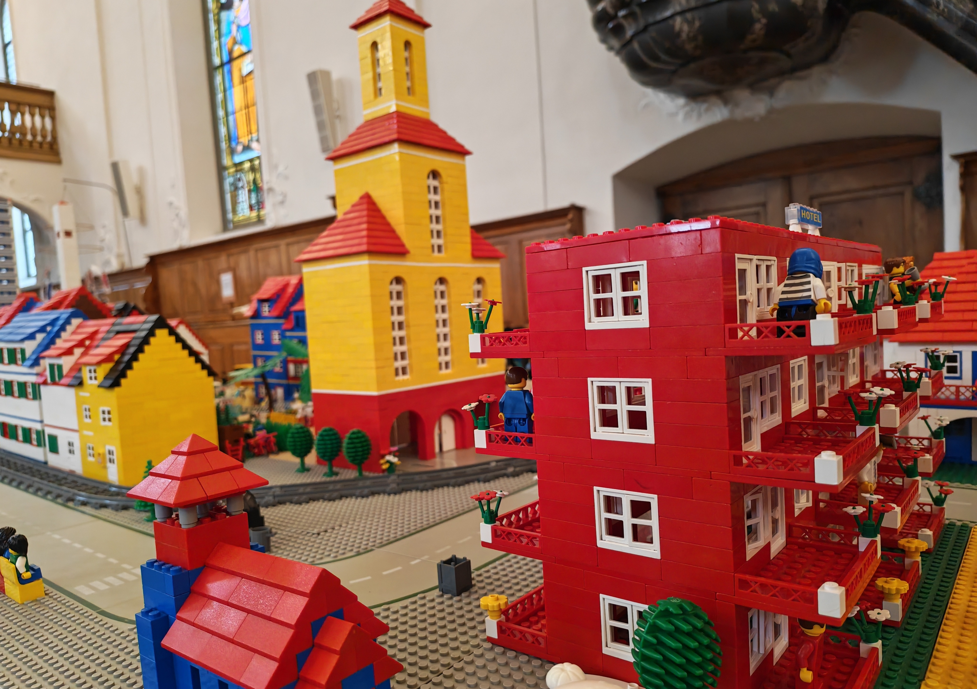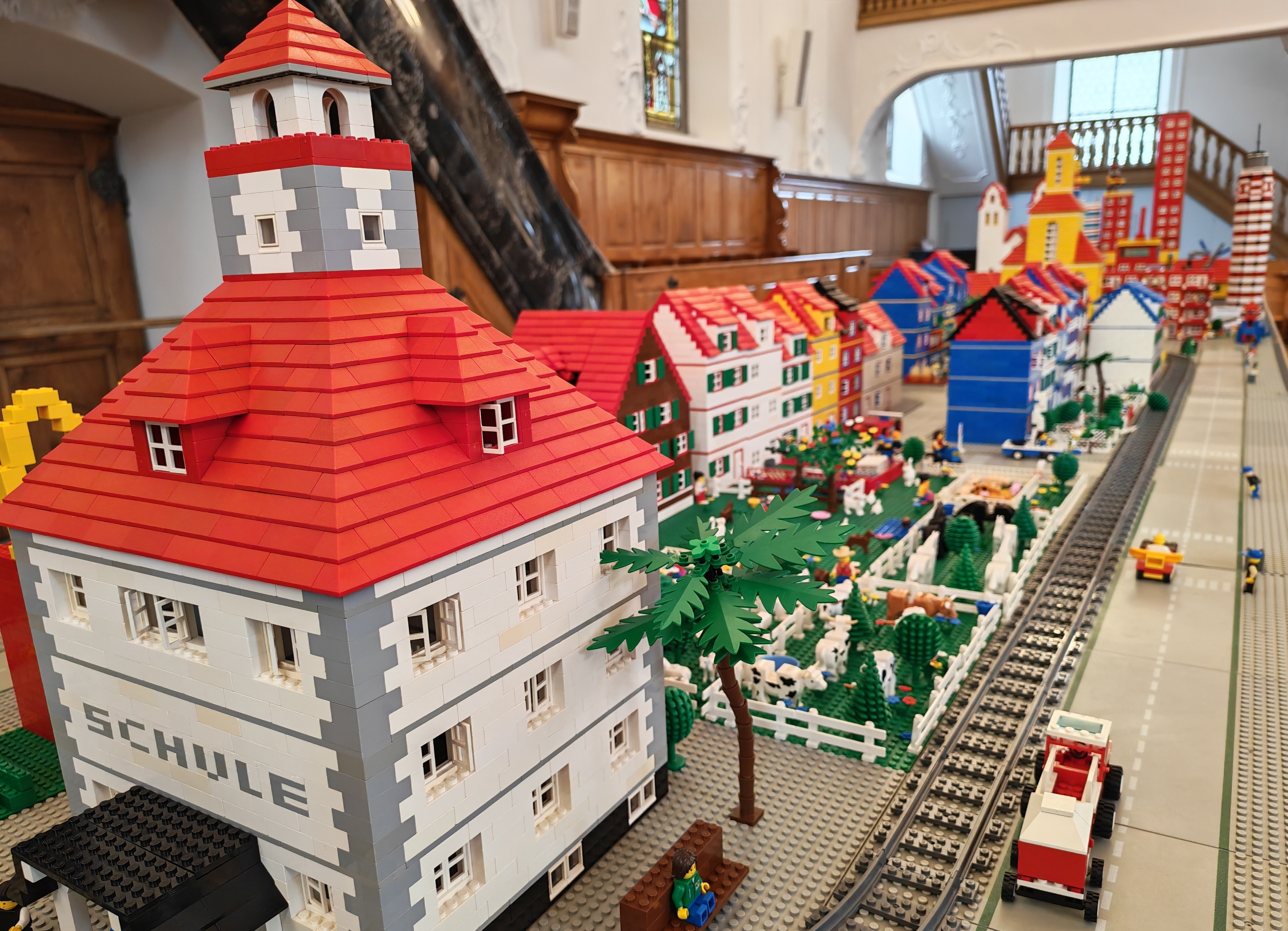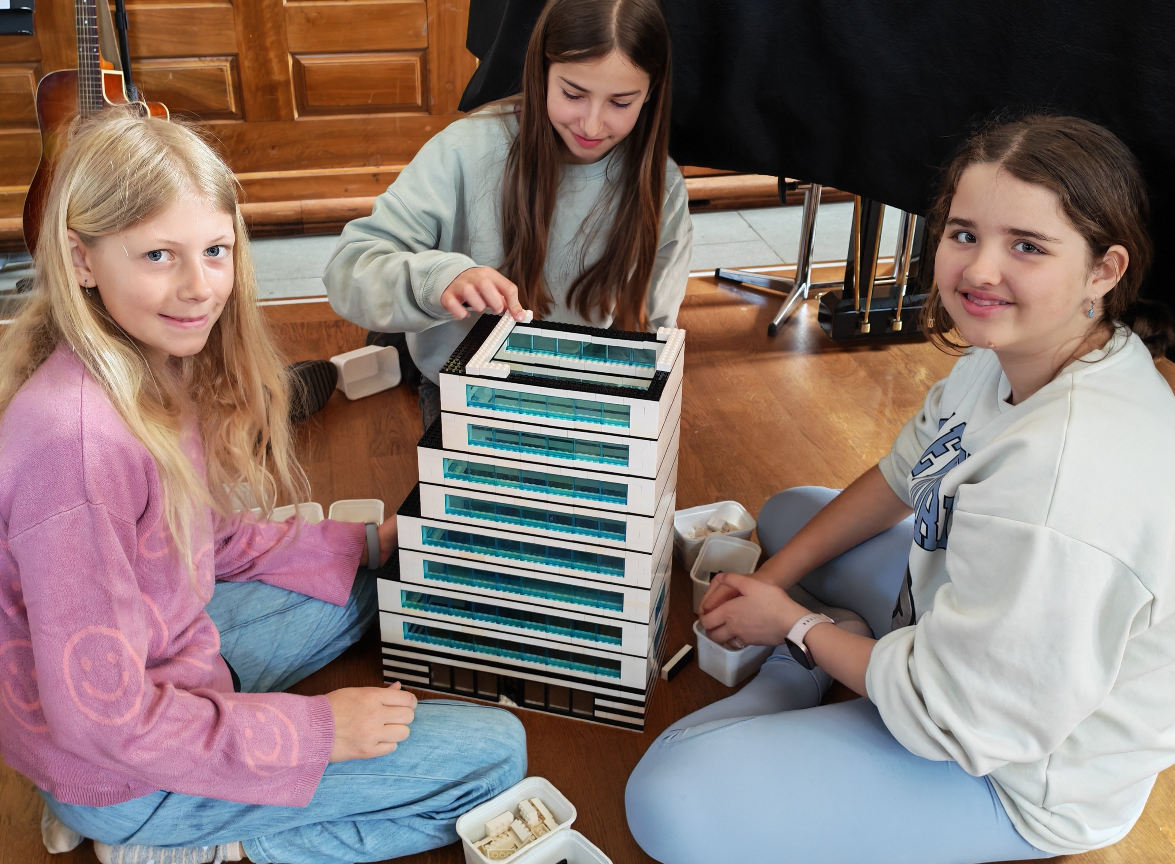 In kleinen Teams bauten alle als Einstieg zuerst einmal ein Reihenhäuschen. Und schon war man bereit für die grossen Projekte: Roche-Tower, Hotels, Schule, Stadion, Ikea, Kirchen, Flughafen und vieles mehr. Einen lebhaften Eindruck von der Bauerei und von der fertigen Stadt bekommen Sie hier unterhalb in unserem ausführlichen Fotoalbum (beim Pfeil weiterklicken).