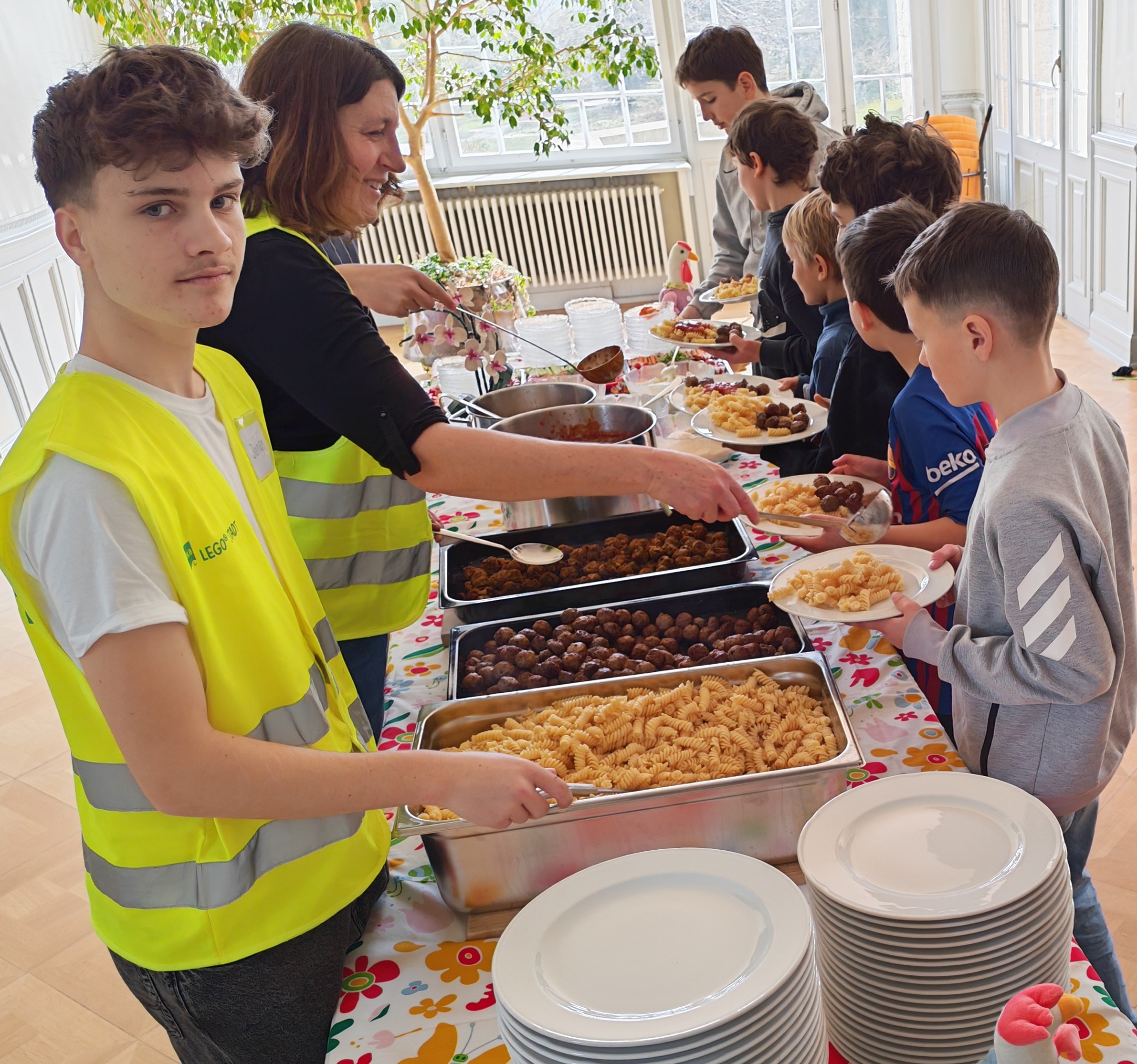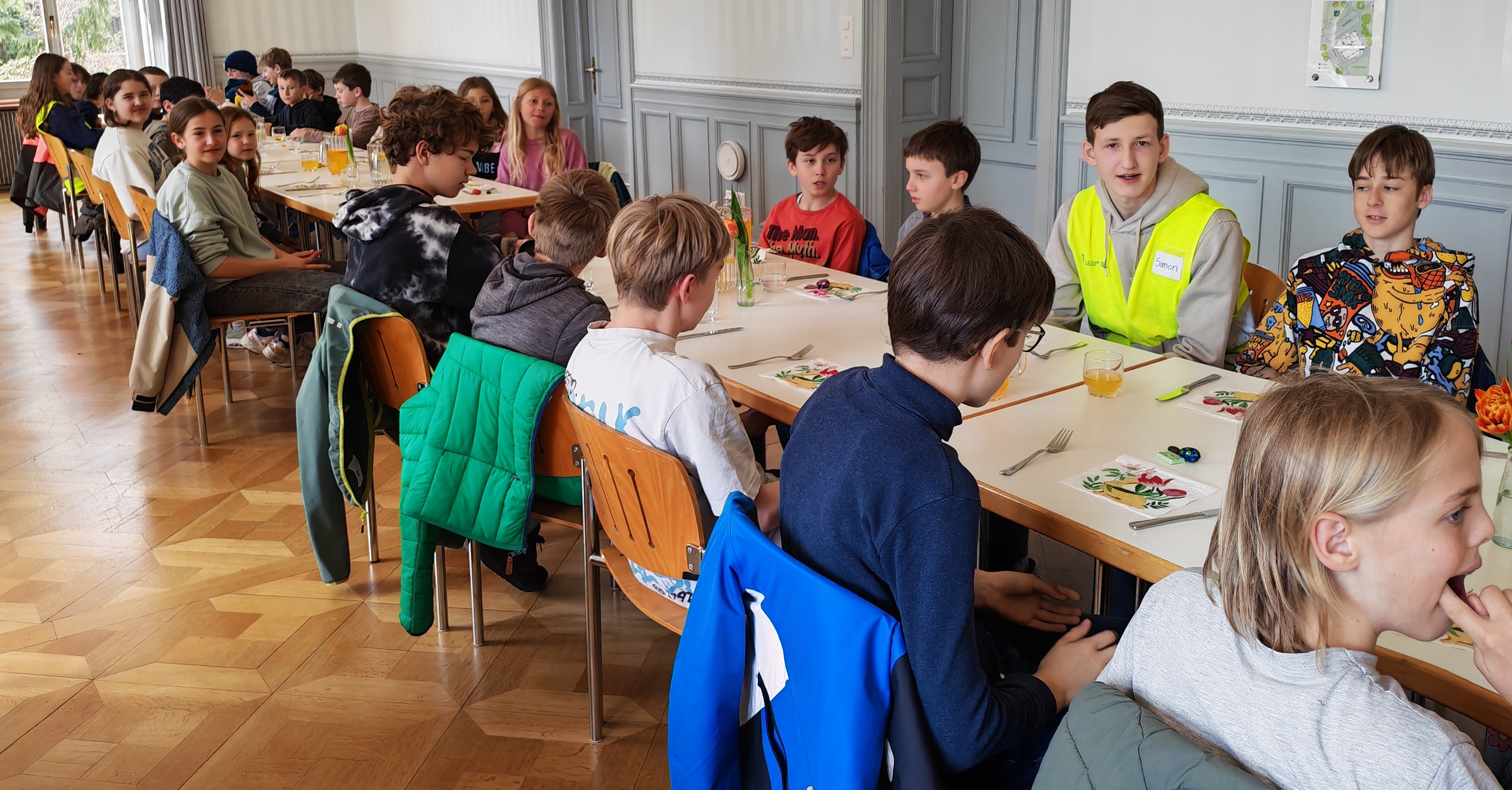 Dann kamen fast 50 JUKI-Kinder, dazu 6 Jung-Leiterinnen und -Leiter, ein starkes Verpflegungsteam und der Chef-Baumeister Andi Grossmann vom Bibellesebund.