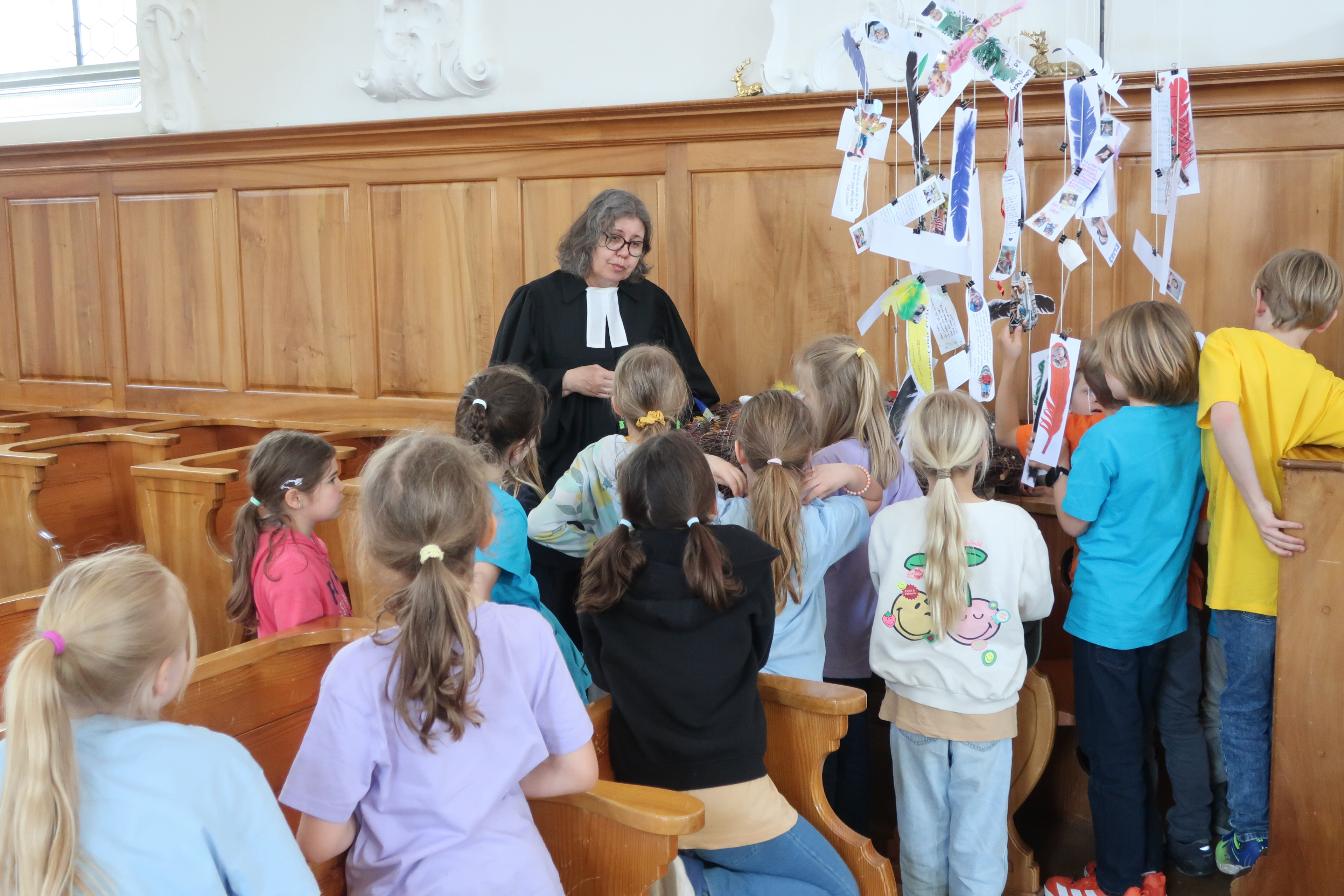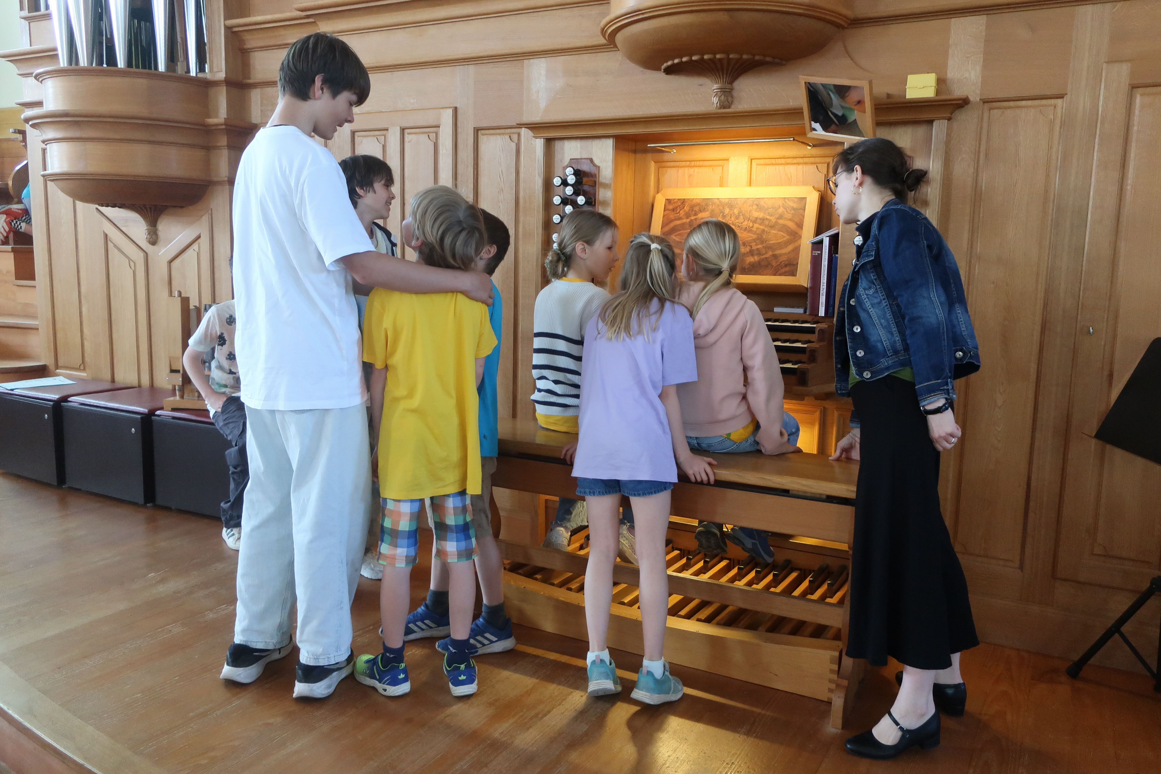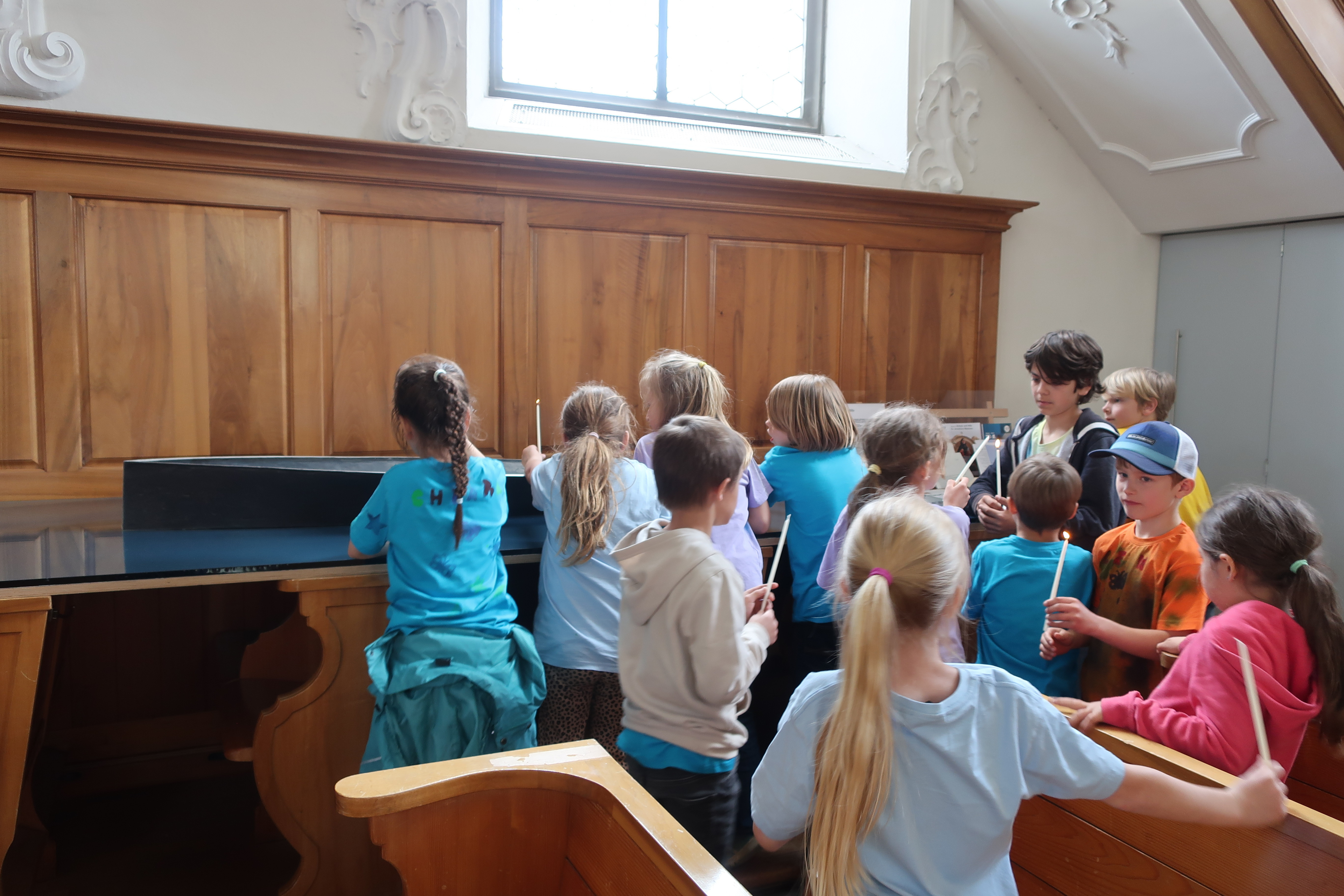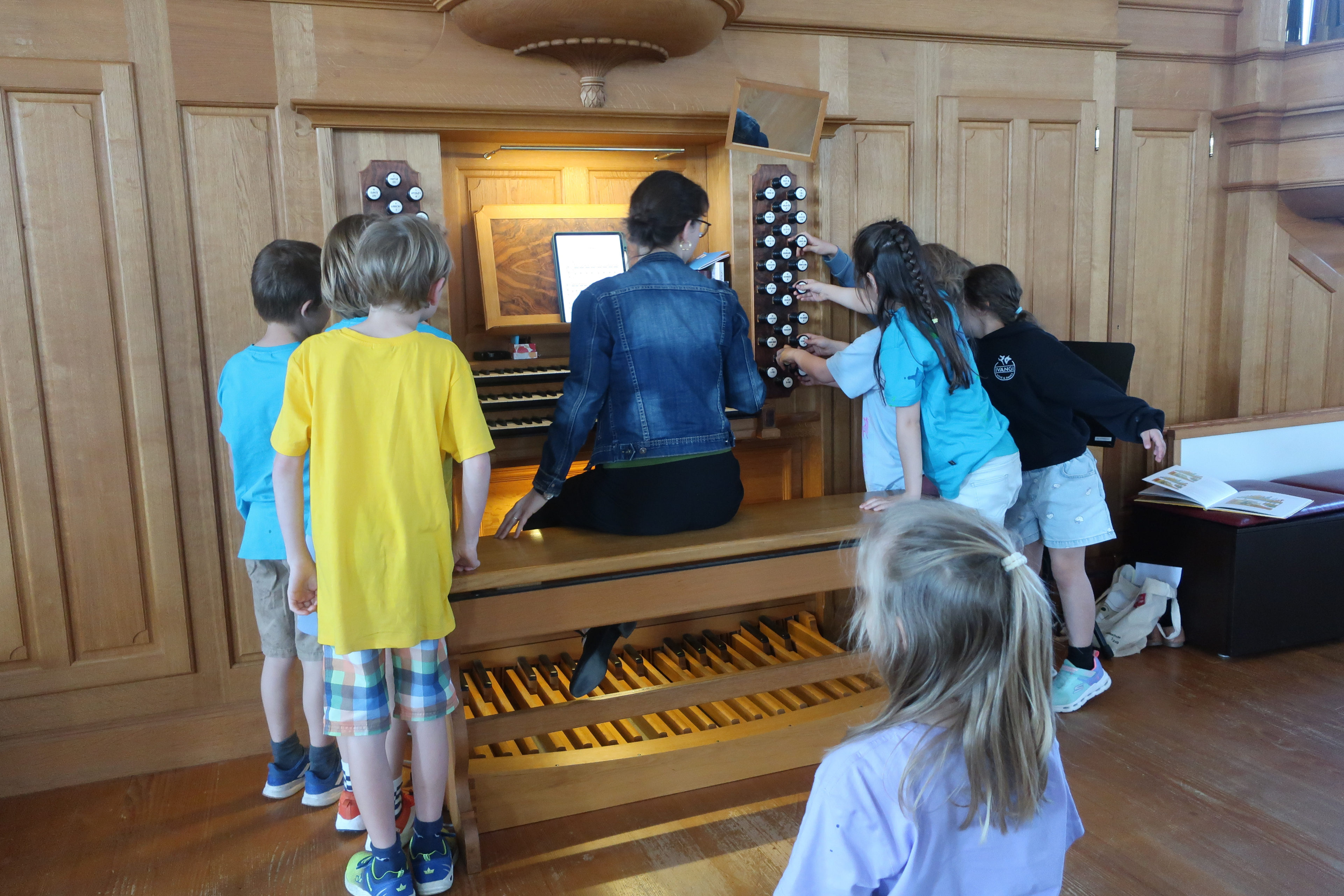 15 Kinder, 6 JungleiterInnen und 2 Erwachsene Leiterinnen waren diese 5 Tage gemeinsam unterwegs. Wir haben gesungen und gebastelt. Geschichten gehört und diese auf verschiedene Arten erlebt. Wir durften den Kirchturm mit Erlroy besteigen und die Orgel mit Mirjam testen. Pfarrerin Undine hat erzählt, was sie in ihrem Beruf so macht und dass sie das schon früh werden wollte. Wir haben uns im Park und Wald bewegt und ausgetobt.