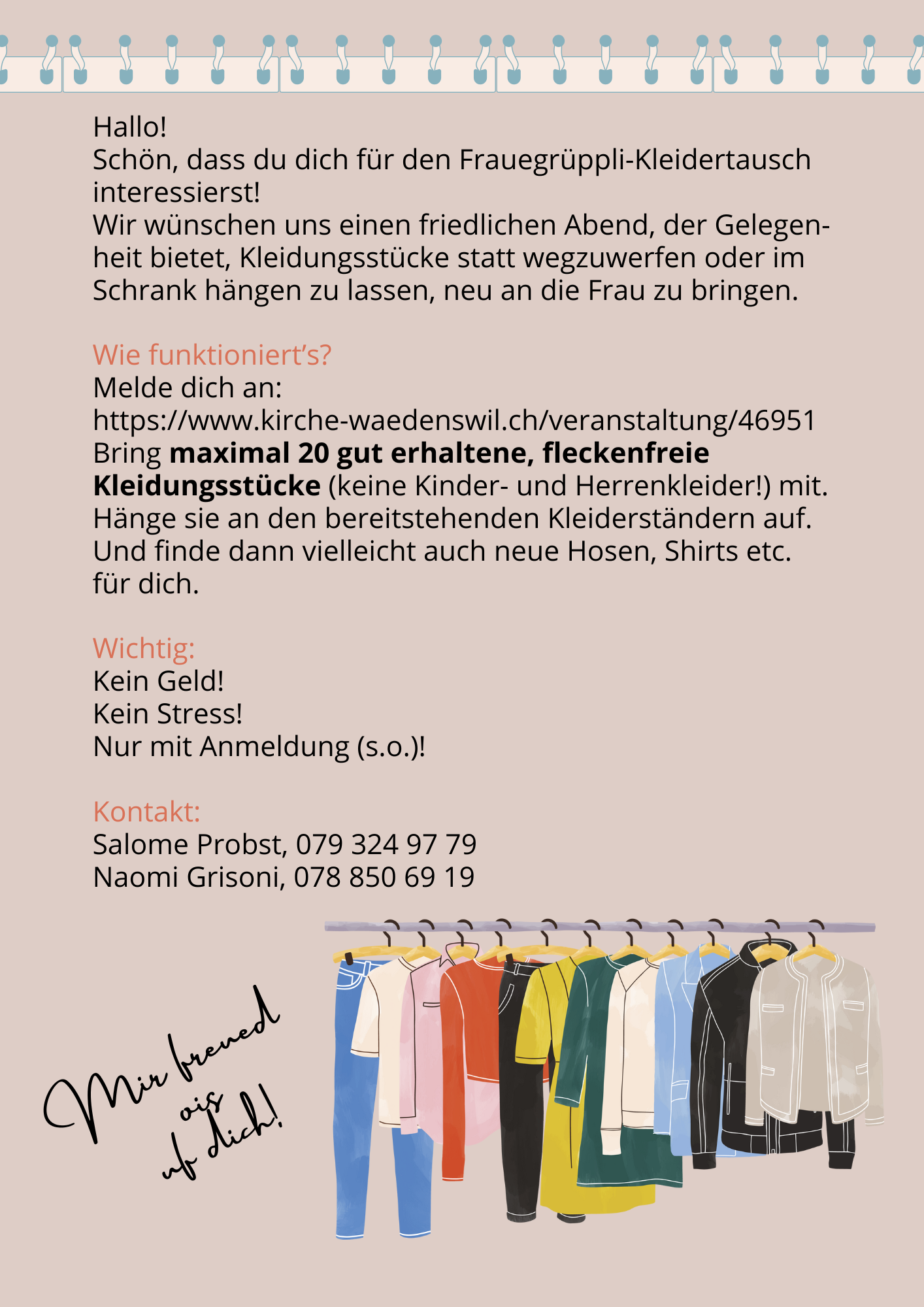 Hallo! Schön, dass du dich für den Frauegrüppli-Kleidertausch interessierst!